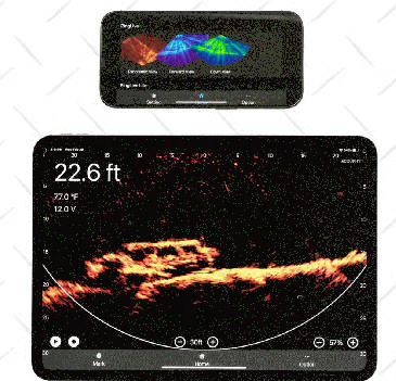 創新的無線LiveSonar系統,透過Wi-Fi連線手機或平板電腦作為顯示器。換能器配備整合處理器,無需單獨的黑盒子, 比傳統系統線纜減少 50%。透過內建 Wi-Fi 路由器,換能器將聲納資料傳到螢幕,只需極少設定即可提供清晰、即時的水下視覺效果。